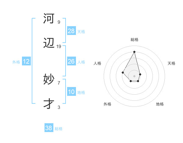 河辺 妙才さんの総格は38画の4点!