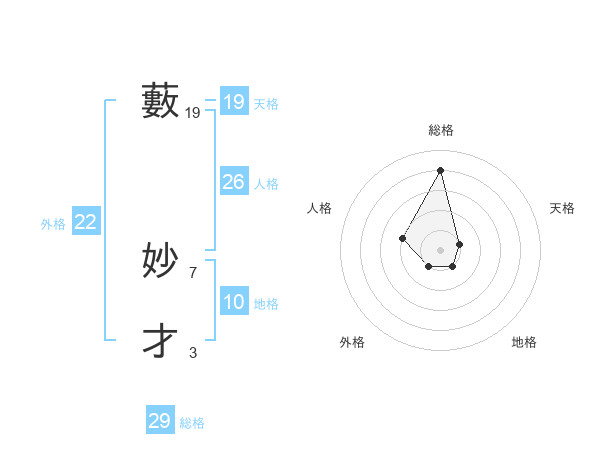 藪 妙才さんの総格は29画の4点!