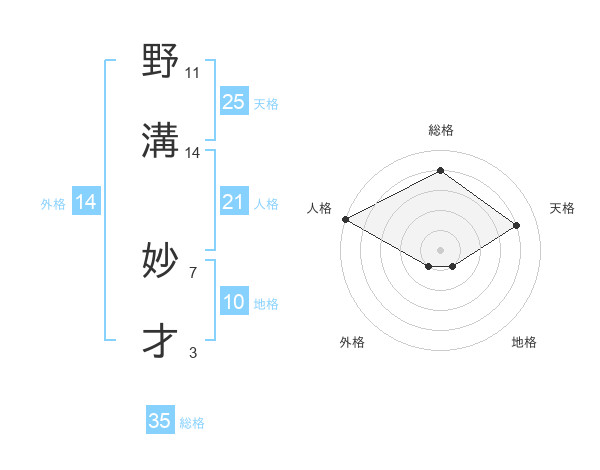 野溝 妙才さんを姓名の画数から五運を鑑定