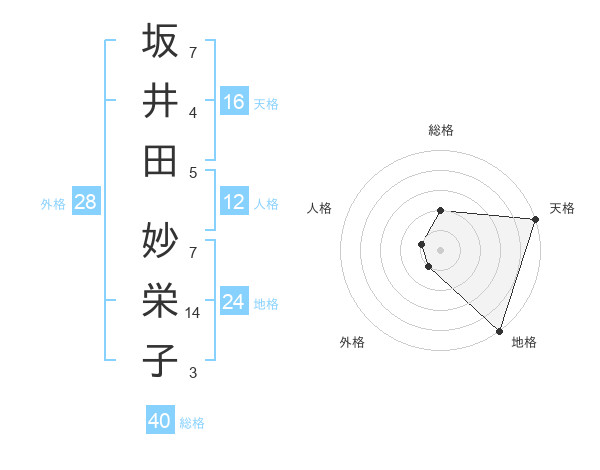 坂井田 妙栄子さんを姓名の画数から五運を鑑定