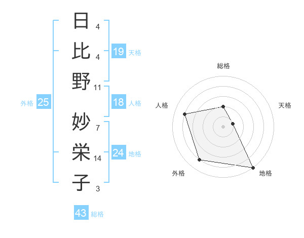 日比野 妙栄子さんを姓名の画数から五運を鑑定