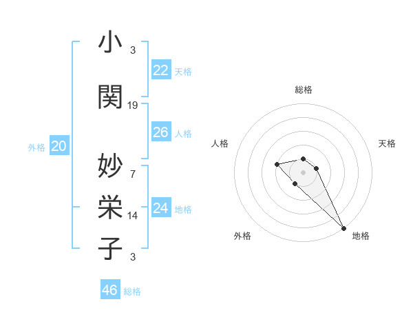 小関 妙栄子さんを姓名の画数から五運を鑑定