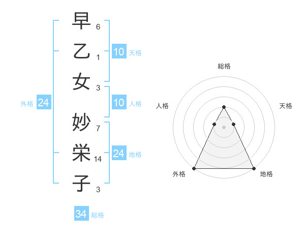 早乙女 妙栄子さんを姓名の画数から五運を鑑定
