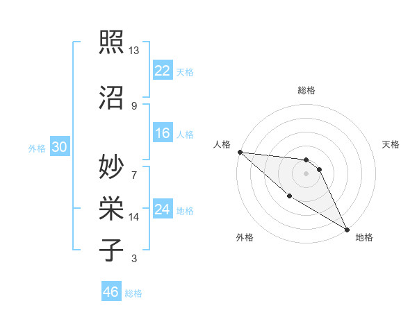 照沼 妙栄子さんの外格は30画の2点!