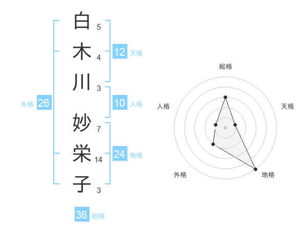 白木川 妙栄子さんを姓名の画数から五運を鑑定