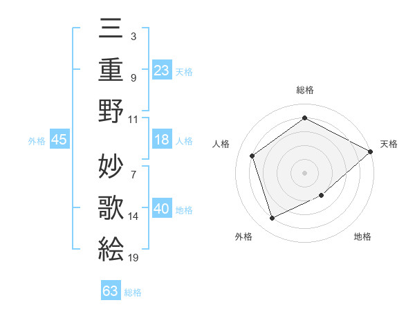 三重野 妙歌絵さんを姓名の画数から五運を鑑定