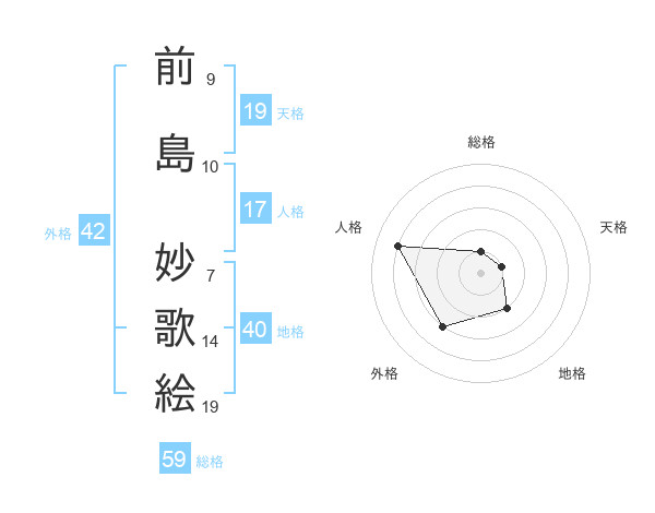 前島 妙歌絵さんを姓名の画数から五運を鑑定
