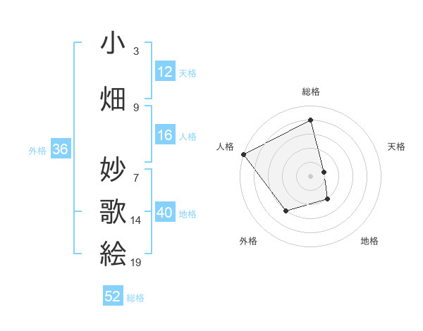 小畑 妙歌絵さんを姓名の画数から五運を鑑定