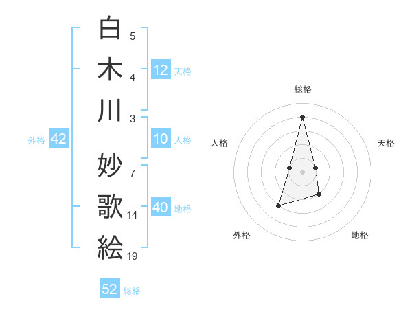白木川 妙歌絵さんを姓名の画数から五運を鑑定