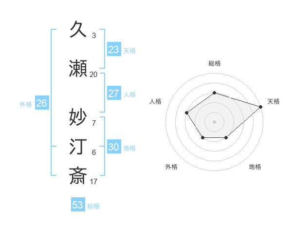 久瀬 妙汀斎さんを姓名の画数から五運を鑑定