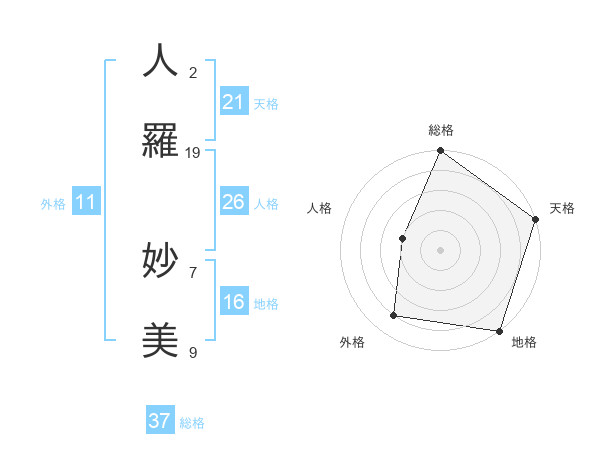 人羅 妙美さんの総格は37画の5点!