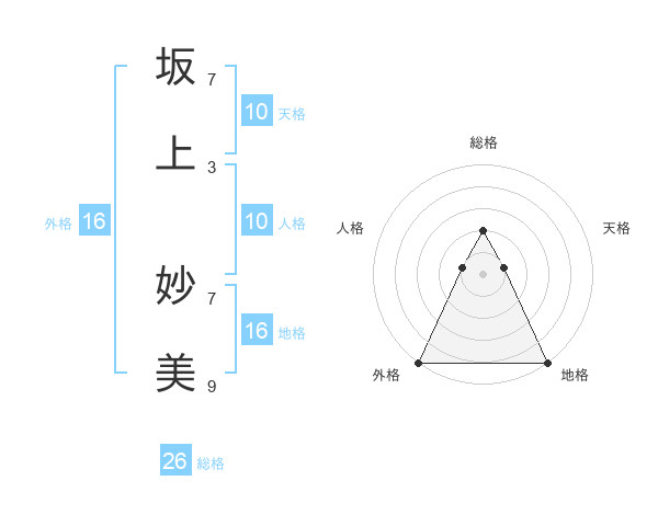 坂上 妙美さんを姓名の画数から五運を鑑定