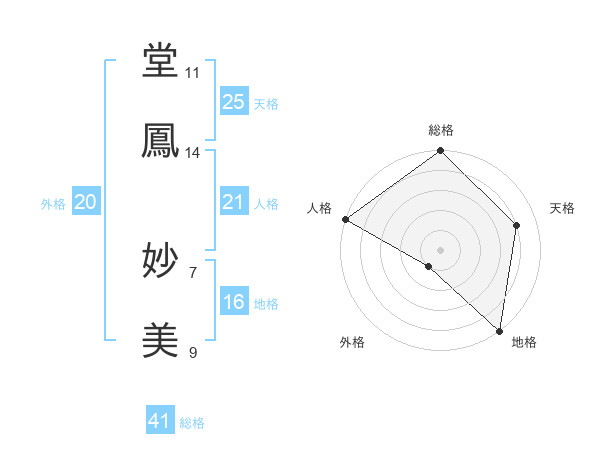 堂鳳 妙美さんを姓名の画数から五運を鑑定