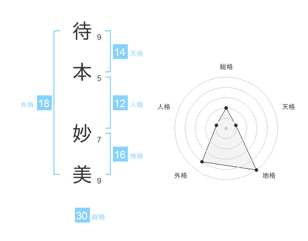 待本 妙美さんの総格は30画の2点!