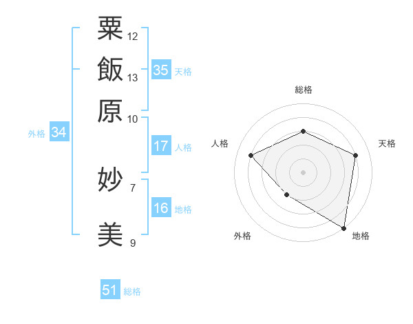 粟飯原 妙美さんを姓名の画数から五運を鑑定