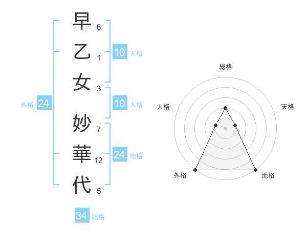 早乙女 妙華代さんの総格は34画の2点!