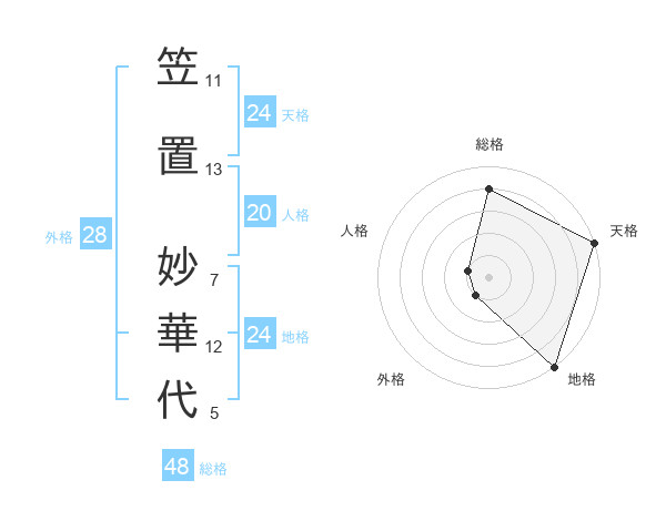 笠置 妙華代さんを姓名の画数から五運を鑑定