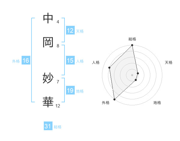 中岡 妙華さんを姓名の画数から五運を鑑定