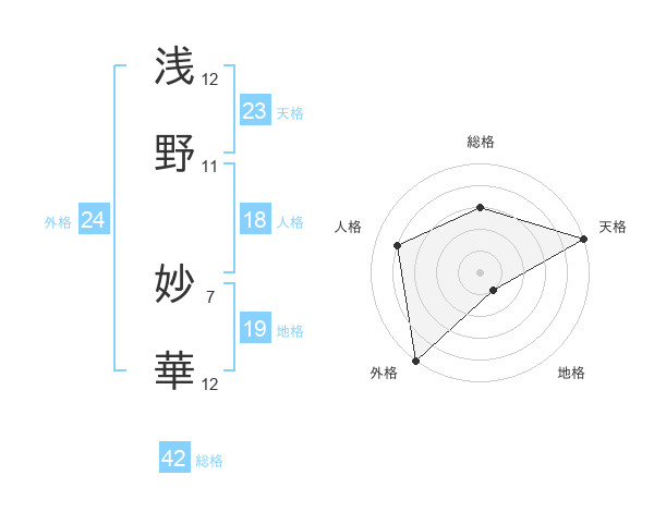 浅野 妙華さんの天格は23画の5点!