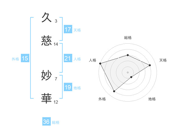 久慈 妙華さんの天格は17画の4点!