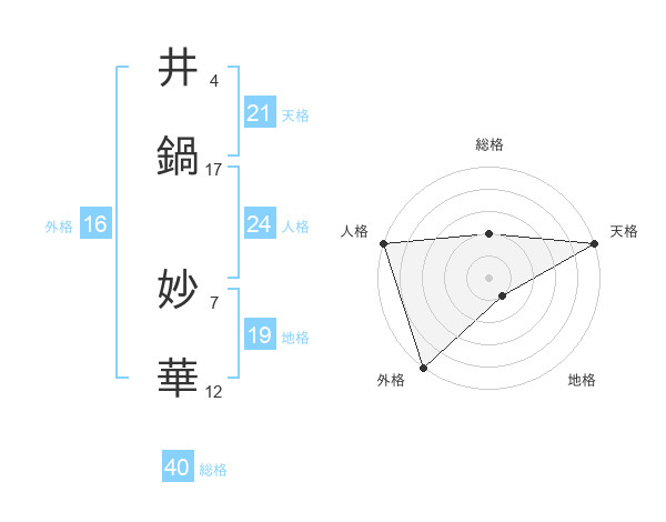 井鍋 妙華さんの天格は21画の5点!