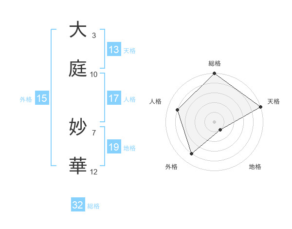 大庭 妙華さんの天格は13画の5点!
