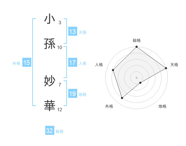 小孫 妙華さんの総格は32画の5点!