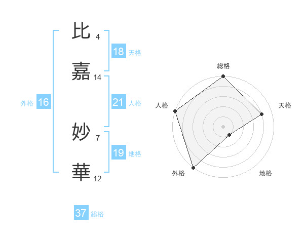 比嘉 妙華さんの人格は21画の5点!