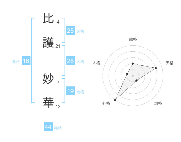 比護 妙華さんの外格は16画の5点!