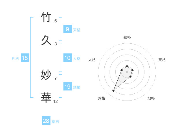 竹久 妙華さんを姓名の画数から五運を鑑定