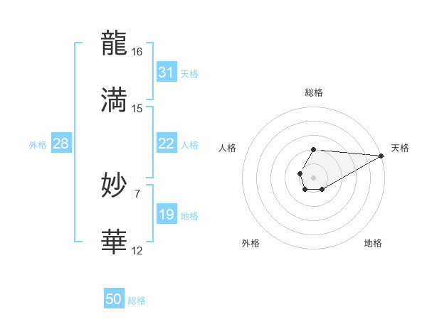 龍満 妙華さんの天格は31画の5点!