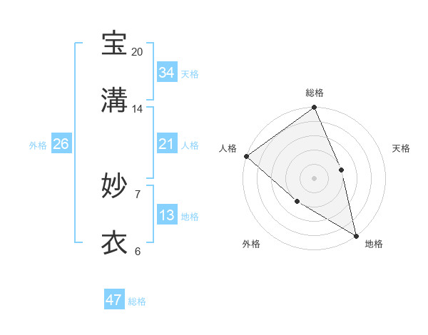 宝溝 妙衣さんを姓名の画数から五運を鑑定