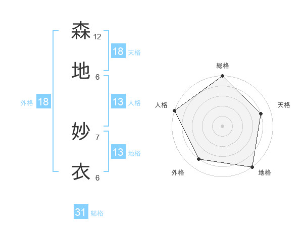 森地 妙衣さんを姓名の画数から五運を鑑定