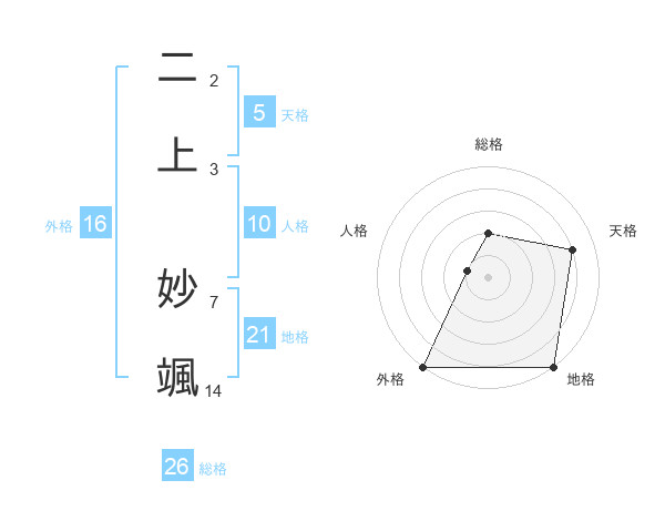 二上 妙颯さんを姓名の画数から五運を鑑定