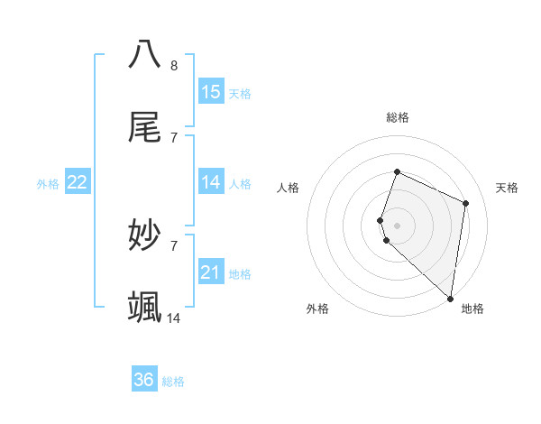 八尾 妙颯さんの外格は22画の1点!
