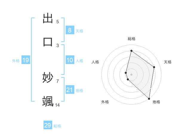 出口 妙颯さんを姓名の画数から五運を鑑定