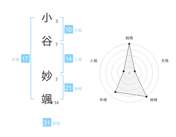 小谷 妙颯さんの総格は31画の5点!
