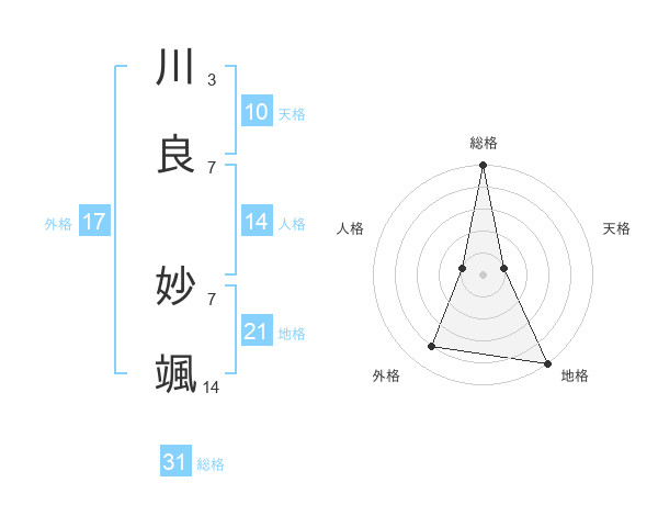 川良 妙颯さんを姓名の画数から五運を鑑定
