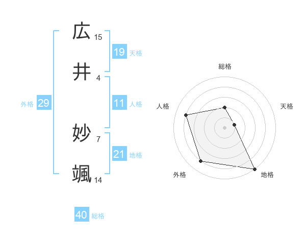 広井 妙颯さんの外格は29画の4点!