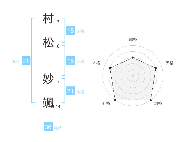 村松 妙颯さんの外格は21画の5点!