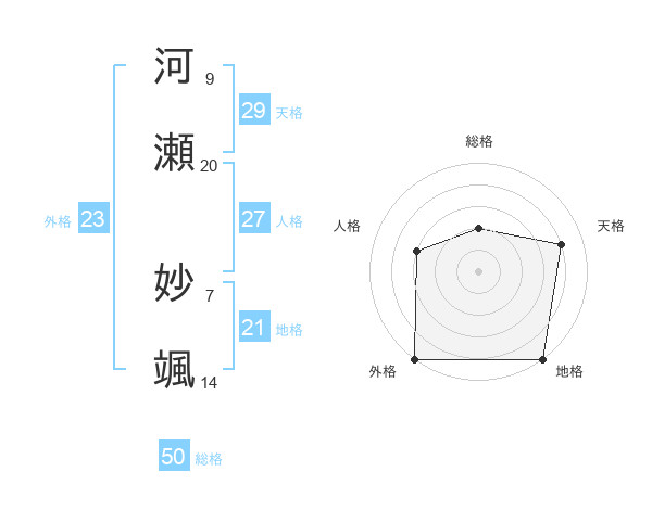 河瀬 妙颯さんの総格は50画の2点!