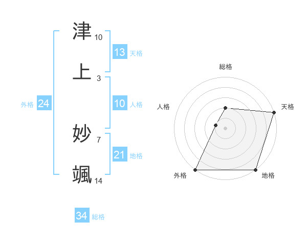 津上 妙颯さんの総格は34画の2点!