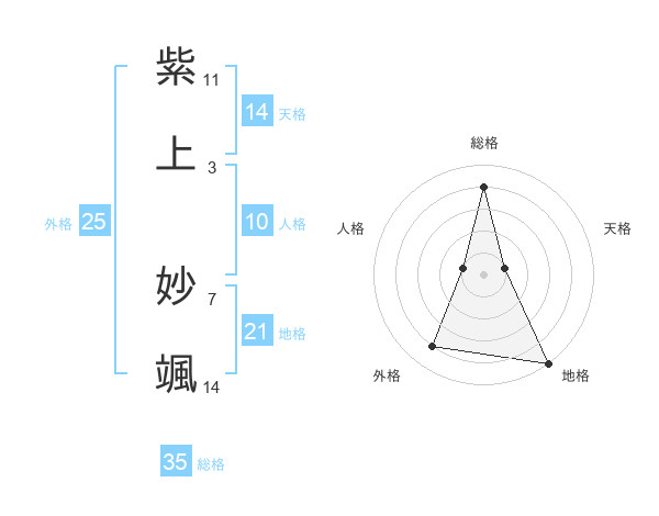 紫上 妙颯さんを姓名の画数から五運を鑑定