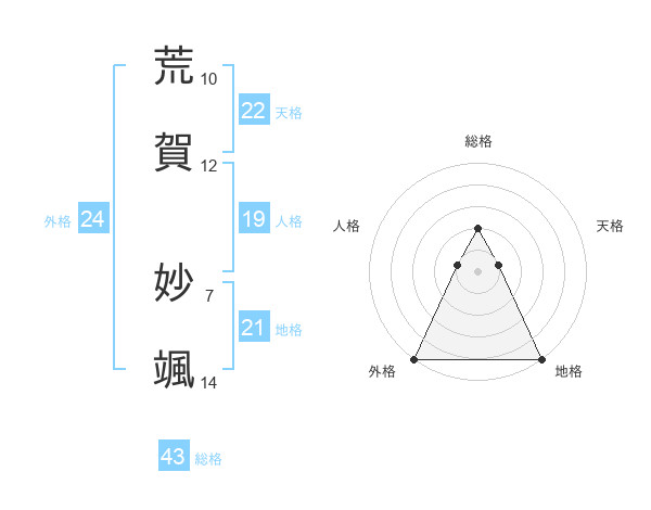 荒賀 妙颯さんを姓名の画数から五運を鑑定