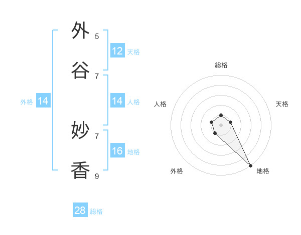 外谷 妙香さんを姓名の画数から五運を鑑定