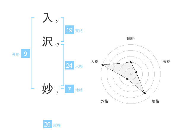 入沢 妙さんの総格は26画の2点!