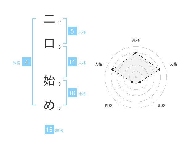 二口 始めさんの総格は15画の4点!