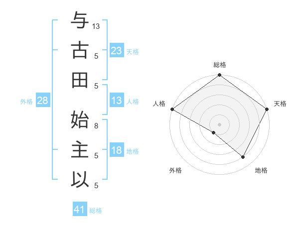 与古田 始主以さんの天格は23画の5点!