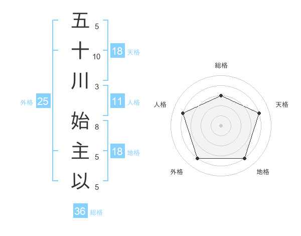 五十川 始主以さんを姓名の画数から五運を鑑定