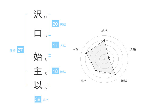 沢口 始主以さんの総格は38画の4点!